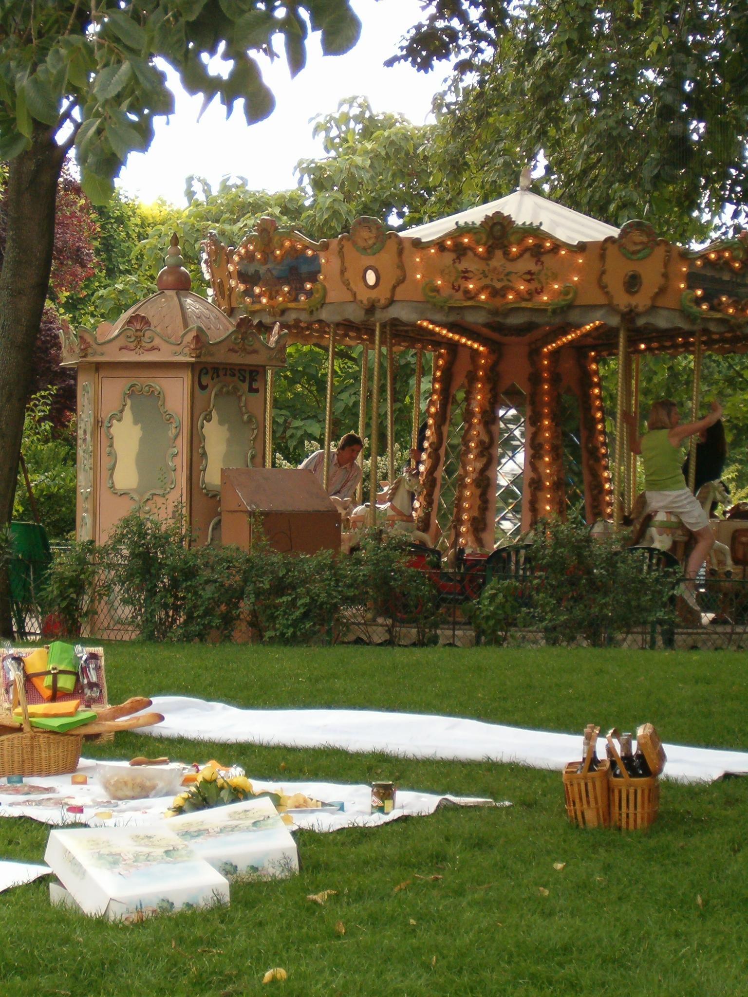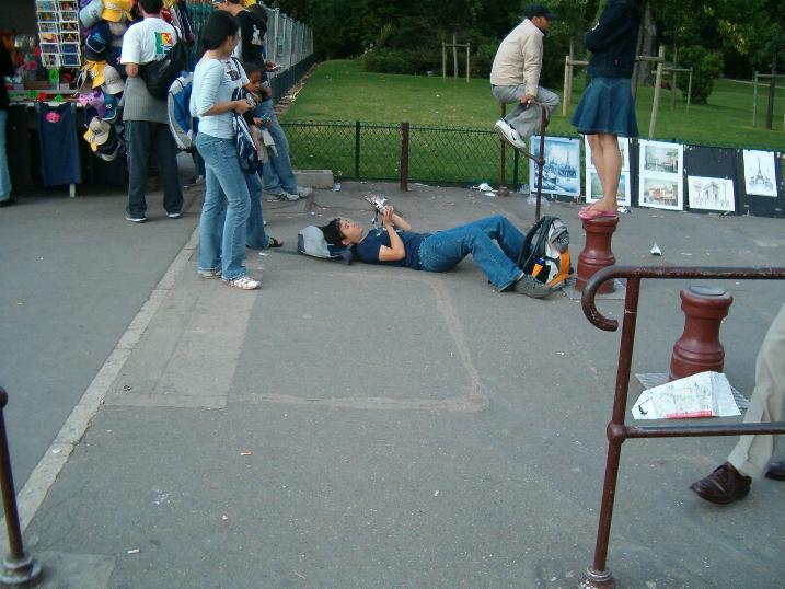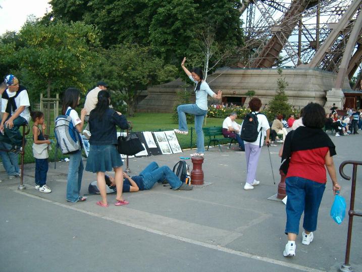 Возле Эйфелевой башни - французы едят и пьют, японки фотографируются